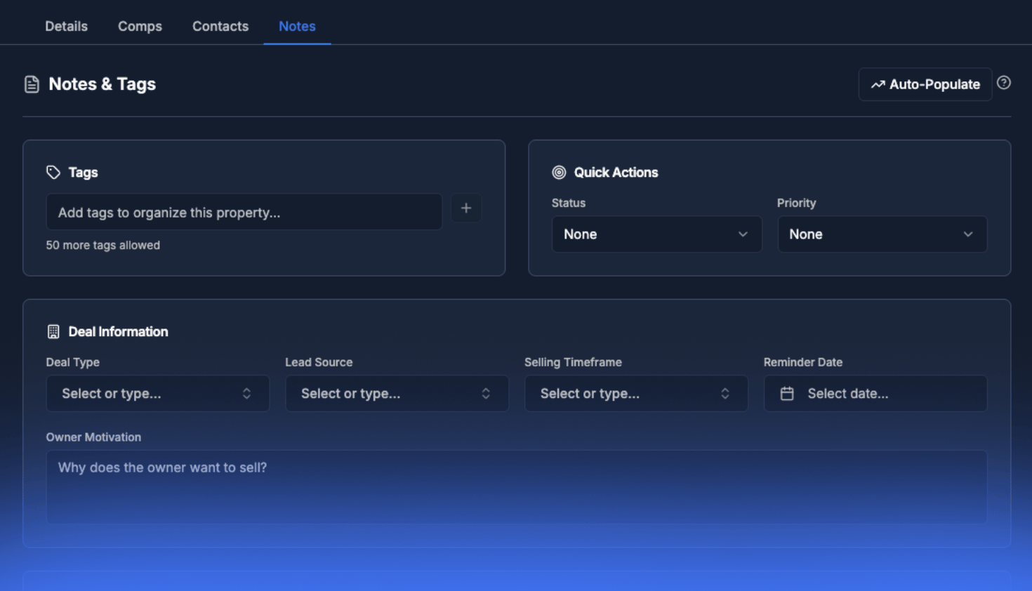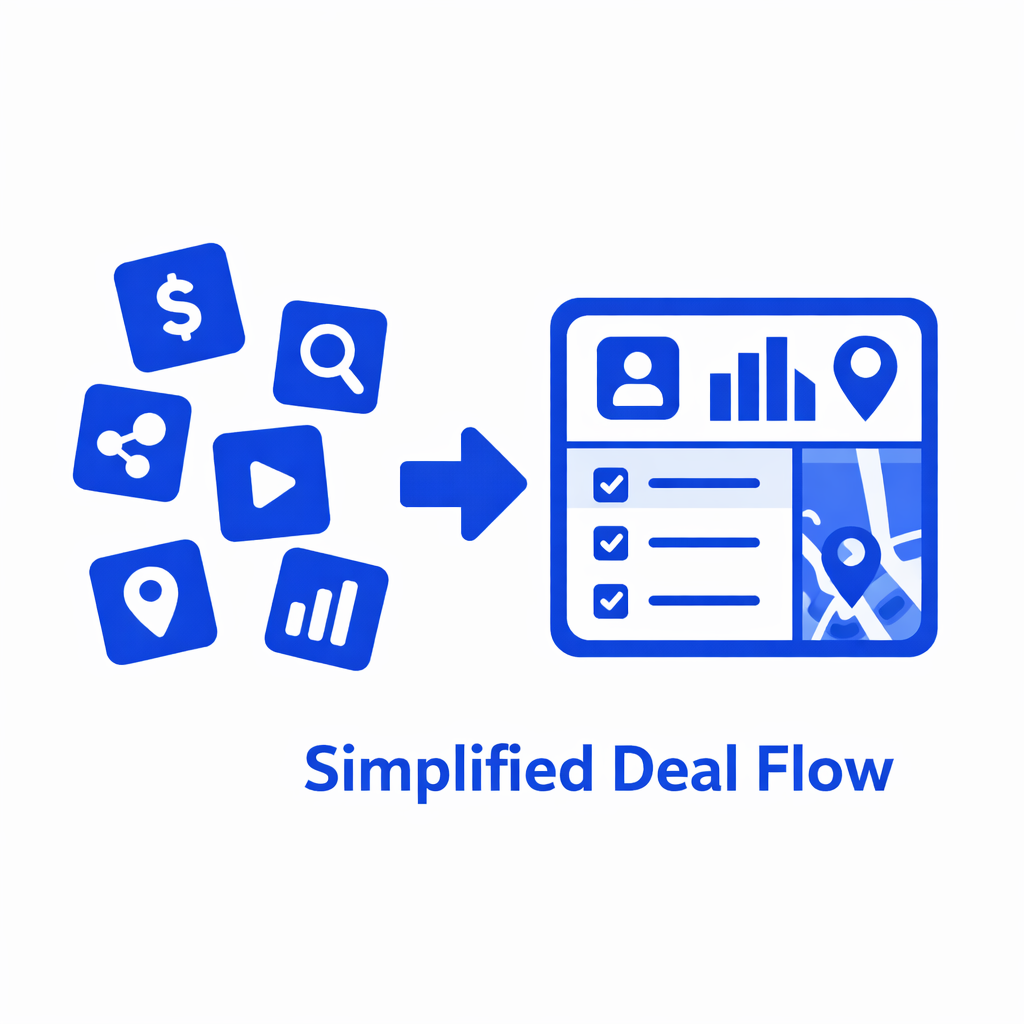 It's an all-in-one software platform for real estate investors. It replaces your data provider, skip tracing tool, CRM, comping software, driving for dollars app, and dispo tool. Everything in one place. One login. One monthly cost.