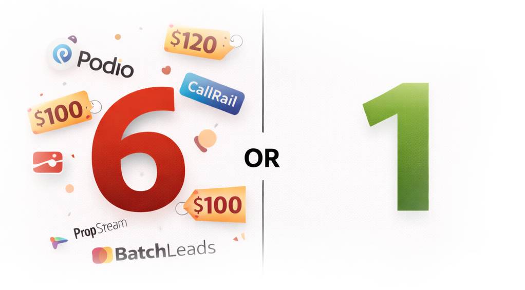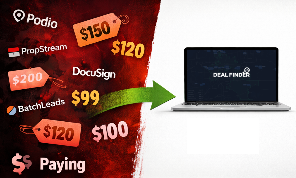 Think about what you're actually paying for right now. You've got your data provider and that's one subscription. Skip tracing is another. Your CRM lives somewhere else. Your comping tool is separate. You're driving for dollars on a different app. And then maybe you've got some kind of dispo software for finding buyers.